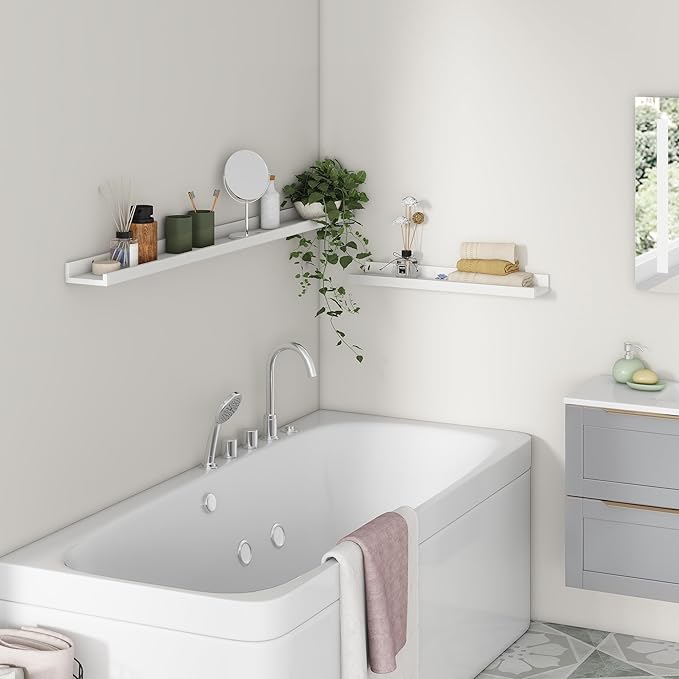 Picture Ledge Shelf, Floating Shelves Set of 2, Solid Pine Wood 55'' Long Large Nursery Book Shelves for Toys Storage, Kids Bookshelf for Living Room Bedroom Decor Books Photo Frames, White