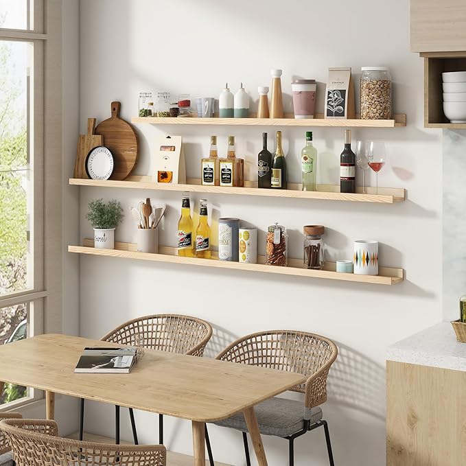 Picture Ledge Shelf, Floating Shelves Set of 2, Solid Pine Wood 72'' Long Large Nursery Book Shelves for Toys Storage, Kids Bookshelf for Living Room Bedroom Decor Books Photo Frames, Natural