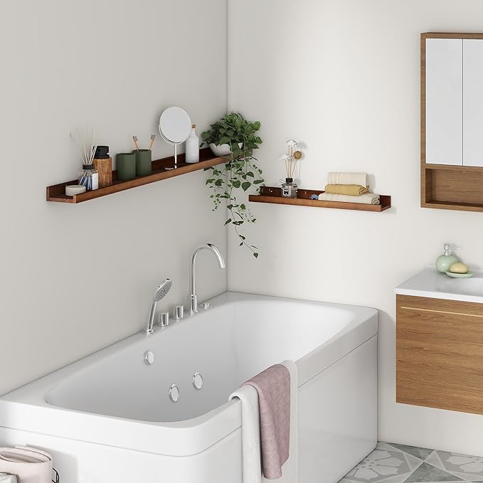 - Multi-scene & Functional: The wall-mounted shelves are designed for decoration and storage, utilizing and decorating any space in your home. Used as shelf decor to show your collection, books, or prize, the hanging shelves are perfect for displaying your photo frame, small plants, model, or audio in your living room, office, study. And can also use as over the toilet storage shelf in the bathroom to hold toiletries or used as a kitchen shelf to store condiments
