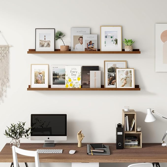 - Easy to Install: You will get a level, screws for the wall, drywall anchors, a detailed installation guide, and two beautiful hand-crafted solid pine wood shelves. With the level, you can make sure your picture ledge shelves are well aligned. Just follow the simple instruction to install the hanging shelves for wall decor within 10 minutes. We add additional screw and anchor to the hardware bag just in case. If you have any questions about our products, please feel free to contact us