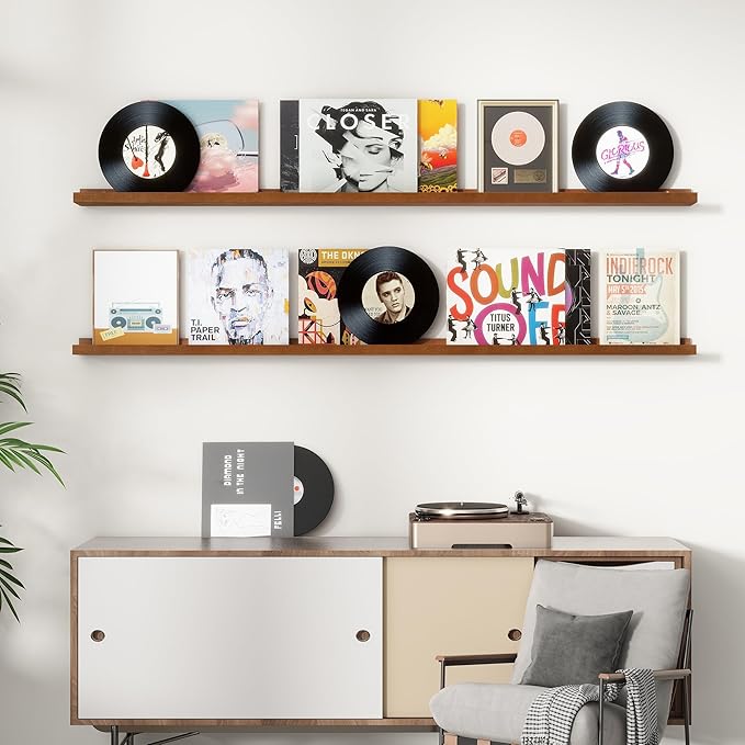 - Picture Ledge Shelves: The ledge in front of the wall shelves could prevent your precious items from falling off. And we handcraft a shallow groove on each book shelf to protect your items from sliding forward. Each floating shelf is 5 inches in depth with a 1.25 inches lip, you can put photos, pictures, DVD players, videos, books, toys, and some other knickknack on this beautiful display wooden shelf