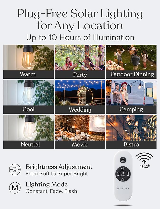 - The Warranty: Our solar string lights are built to last, and we stand behind that. That's why we offer an industry-leading 2-year limited warranty on all purchases from Brightech USA, including any defects, malfunctions, or sudden failures to your string light.