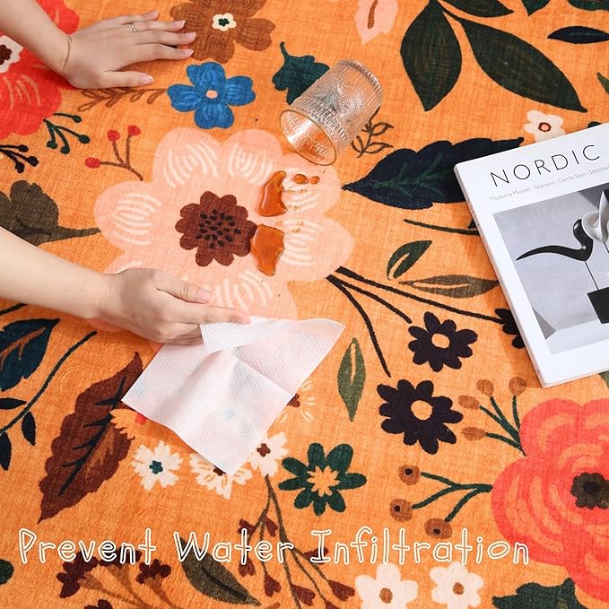 - ✨ WASHABLE RUG: Protecting rugs from spills is nearly impossible, especially you have a child, a pet, or one of the messier hobbies. Use vacuum cleaner, broom, or wipe for daily cleaning to prevent dust and crumbs from setting into the fibers. if excess liquid remains or dirt on the surface of the rug and you want your rug to to be thoroughly clean, Machine wash with cold water on gentle cycle(not to add bleach),air dry or dry on air-only cycle with out heat.