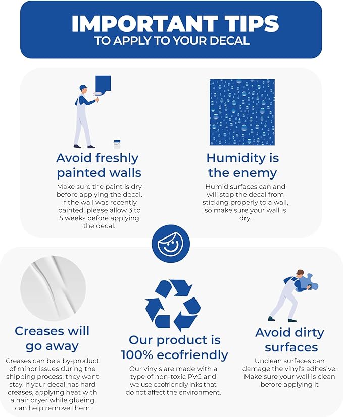 - โ๏ธYOU CAN ADJUST THE POSITION: If you think the vinyl position is inappropriate, don't worry! You can take it off, adjust the position again, and stick it back in the place you want. DISCLAIMER: This only applies to vinyls smaller than 20". If you want to un-stick the vinyl, take into account that this process must be done shortly after you applied the vinyl.