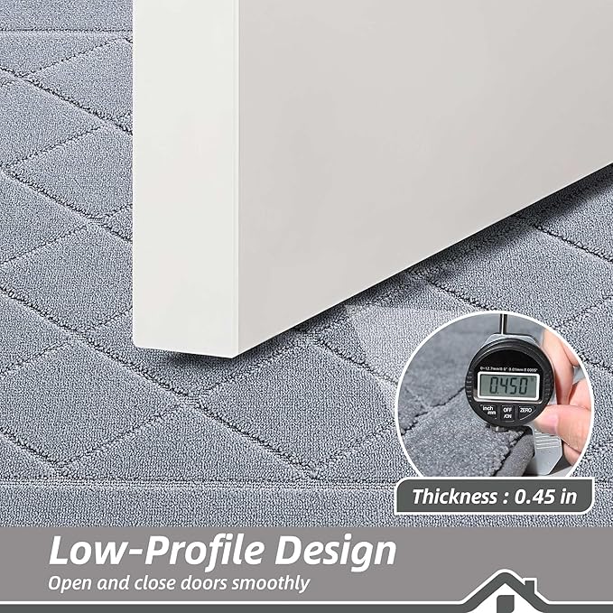 - Stylish and Low Profile Design: Fashionable geometric patterns are suitable for most kinds of home décor. Our doormats measure 24" x 36" x 0.45", low-profile design and reinforced overlock edges to ensure that doors won't get stuck or the door rug go curling. Note: Please confirm the height of the door gap before purchasing