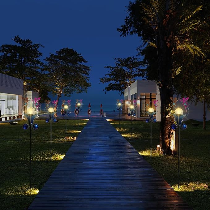 VCUTEKA Solar Lights Outdoor Metal Garden Stake Waterproof Crackle Glass Globe Garden Decor Fairy for Pathway, Lawn, Patio, Yard