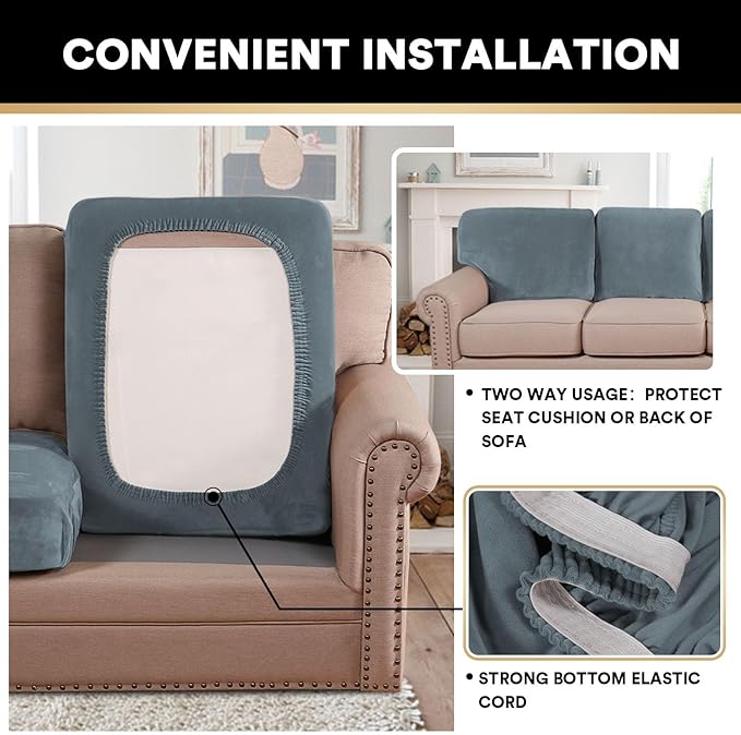 - EFFORTLESS CONVENIENT INSTALL: Elastic Bottom around the hem to strengthen the cover, make the cover stays in place better. The perfect combination of elasticity and shrink resistance will minimize the time you spend straightening and smoothing. Full-cushion coverage showcase a brand new, longer-lasting sofa.