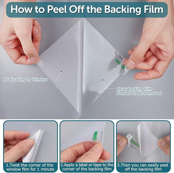 - NO GLUE & Reusable: No glue design keeps you away from the trouble of toxic chemical glue. Static cling window film is easy to install and remove without any residue. More important, you can remove and use it again. The more water you use, the firmer the privacy window film will stick, soapy water is better. For more information on how to install privacy window film, you can refer to our detailed page.