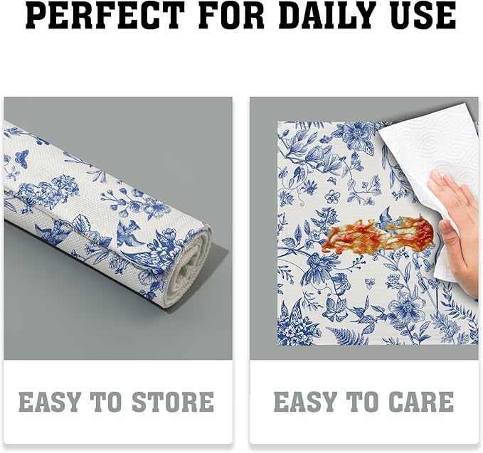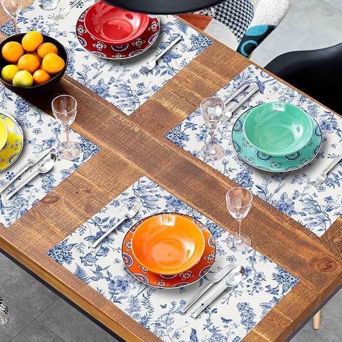 - 【Material Size】: Our blue floral placemats are made of linen, which does not fade easily and is printed on both sides in bright colours. These placemats measure 12x18 inches, and are big enough to hold your plate. They can be reused.