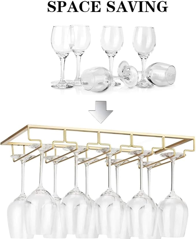 - ๐ทSPACE SAVING: Offer you a neat and modern style kitchen, cabinet or mini bar. Our wine glass rack use the space under your cabinet as storage of your wine glasses, which takes little space.
