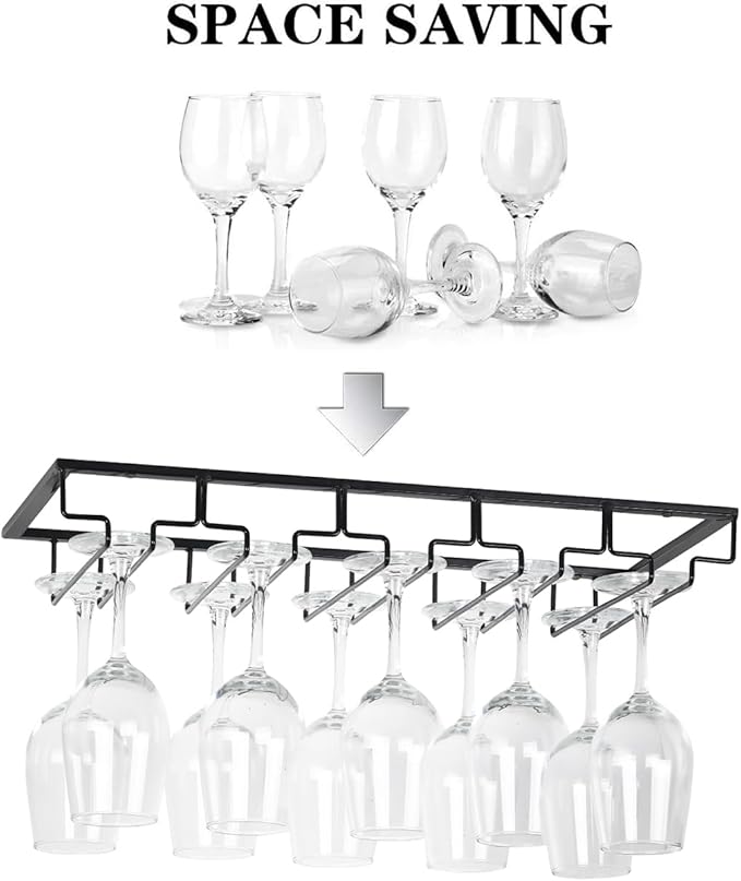 - ๐ทSPACE SAVING: Offer you a neat and modern style kitchen, cabinet or mini bar. Our wine glass rack use the space under your cabinet as storage of your wine glasses, which takes little space.