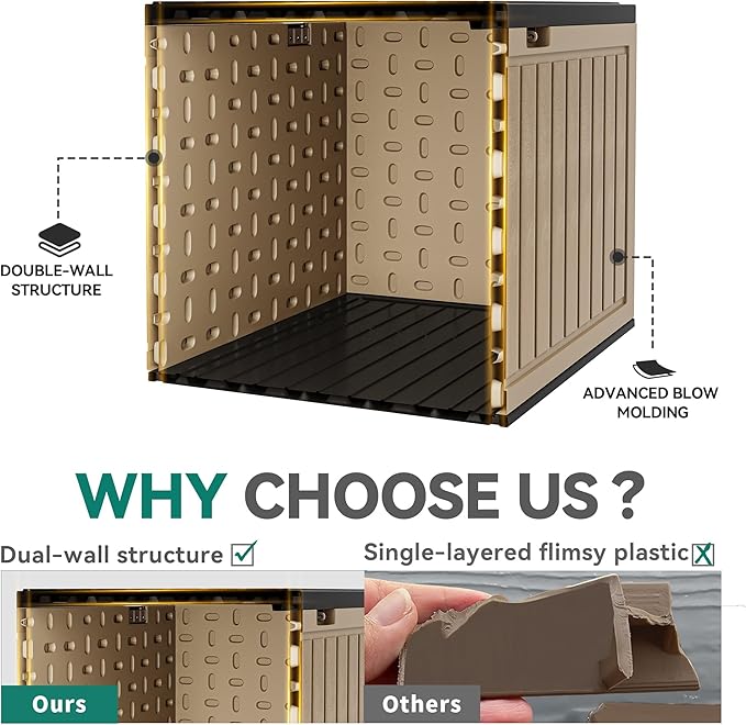 - Double-Layer Structure: Our all-weather resin deck box stands out with a double-layer structure and enhanced with internal reinforced steel beams, providing durability and resilience for outdoor use