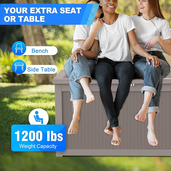 - ππ«π§π₯π π¦πππ§ππ‘π - GYMHILL patio storage box provides extra comfortable bench seating.This multipurpose outdoor storage container is suitable for those big backyard parties or a place to rest after working in your yard.