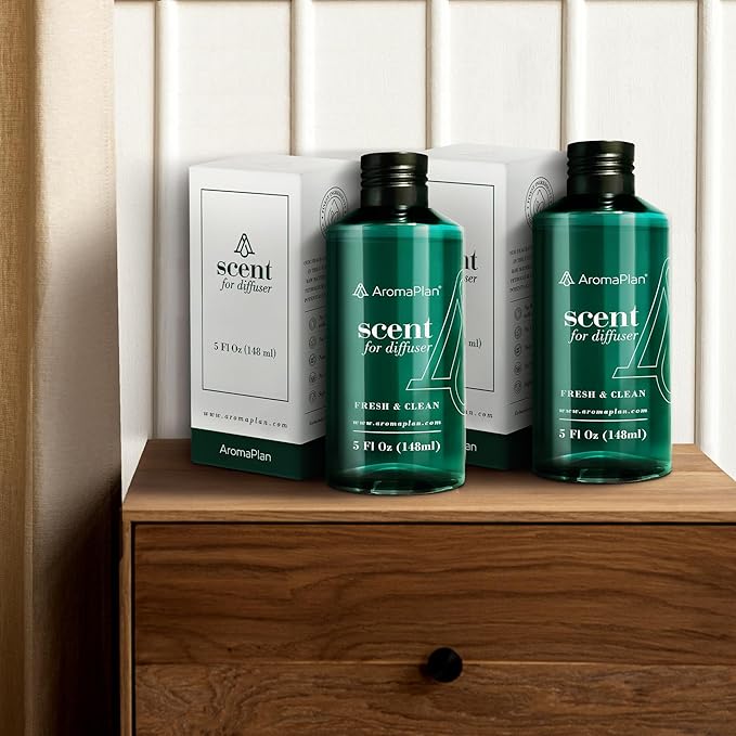 Aromaplan Scents, Clean Smelling Essential Oils, Fresh & Clean 5 Fl Oz (2 Pack)-Fresh Scent Essential Oil for Diffuser, USA Fragrance, Bigger Bottle, Bolder Aroma & Longer Lasting