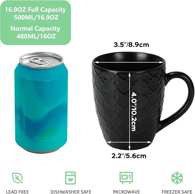- Drinking Capacity: This matte black coffee mug has a maximum capacity of 16.9 oz/500ml, with a standard capacity of 16 oz, which can meet your daily needs and fit with coffee, latte, milk, etc . The large handle design provides a comfortable grip and convenient use
