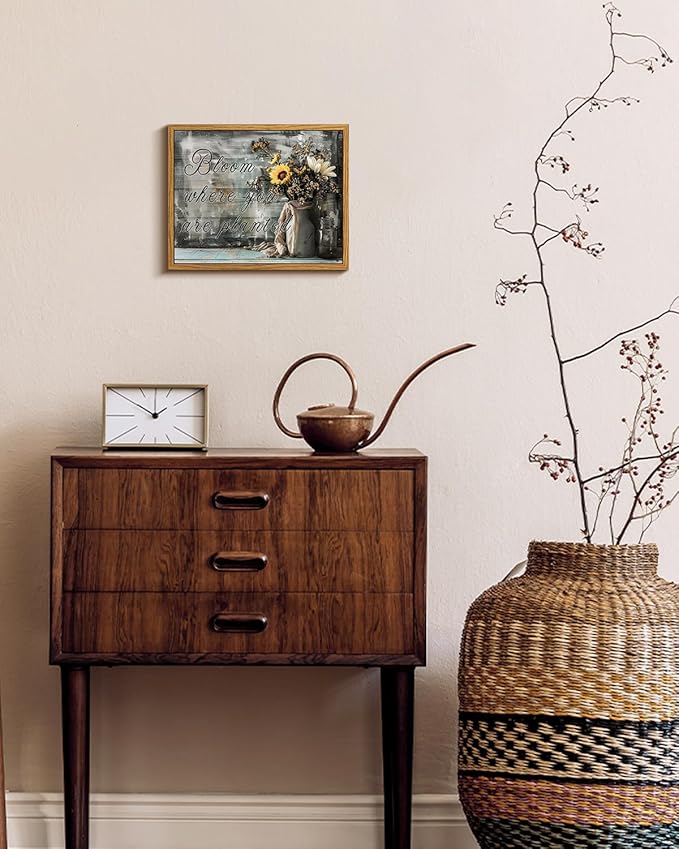 VIYYIEA Framed Canvas Wall Art Home Decor Bathroom Decor Farmhouse Flower Pictures and Quote Wall Decor Bath Canvas Prints Rustic Painting Aesthetic Home Decor for Living Room Bedroom Kitchen 8x10in