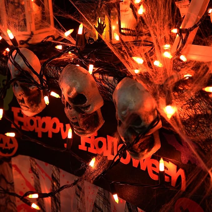 - End-to-End Connectable & Easy to Install: Each Halloween string light features a male and a female safe plug, an easy end-to-end connection allows up to 2 strands (150ft in total) connected together to illuminate a wider range. Just hang the string light on wherever you like, power on, you will get a charming night with these bright lights!