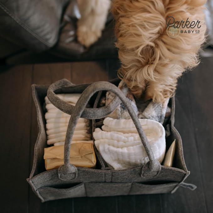 - QUALITY AND SATISFACTION GUARANTEE: Crafted from soft felt, our diaper caddy is built to last. The high-quality materials ensure durability and easy maintenance. We stand behind the product with a satisfaction guarantee, making your purchase risk-free. Elevate your diaper organization with the Parker Baby Diaper Caddy – the ultimate diaper bag essential and nursery organizer.