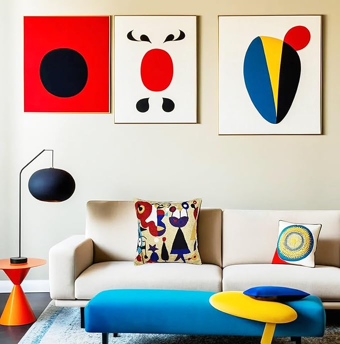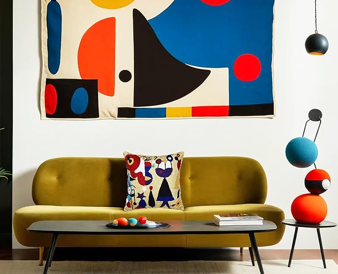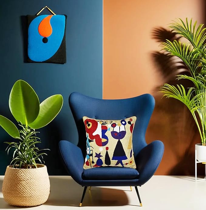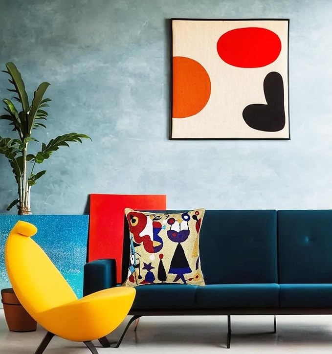 Abstract Decorative Pillow Cover Hand Embroidered Whimsical Toss Pillows Farmhouse Chair Cushion Contemporary Pillowsham Mid-Century Chair Cushions Wool Size 18x18