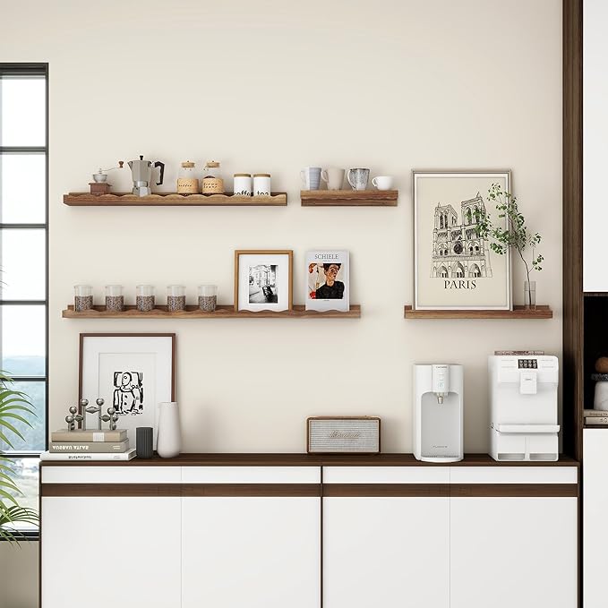 - 【Picture Ledge Shelves】With its effective wave design, these shelves reliably prevent items from falling off, providing a secure storage solution. You can easily organize your home space by placing picture frames, small plants, photo frames, books, toilet paper, bath towels, or decorations on these versatile shelves.