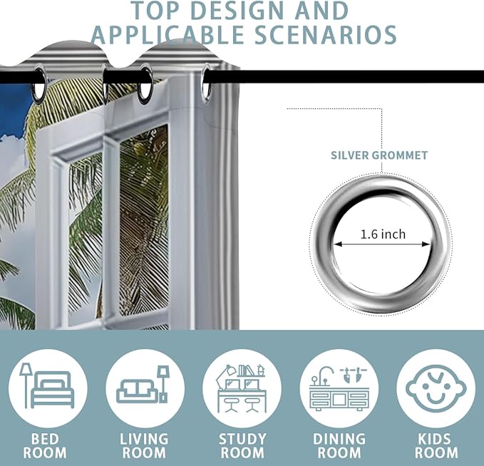 - 【UNIQUE DESIGN】 This Beach decorative curtains style is Fashion, bringing a bold and fun feeling to the bedroom and living room. Using 3D digital printing and dyeing technology which brings visual enjoyment. Suitable for different styles of home decoration. These drapes will make any room in your house pop.