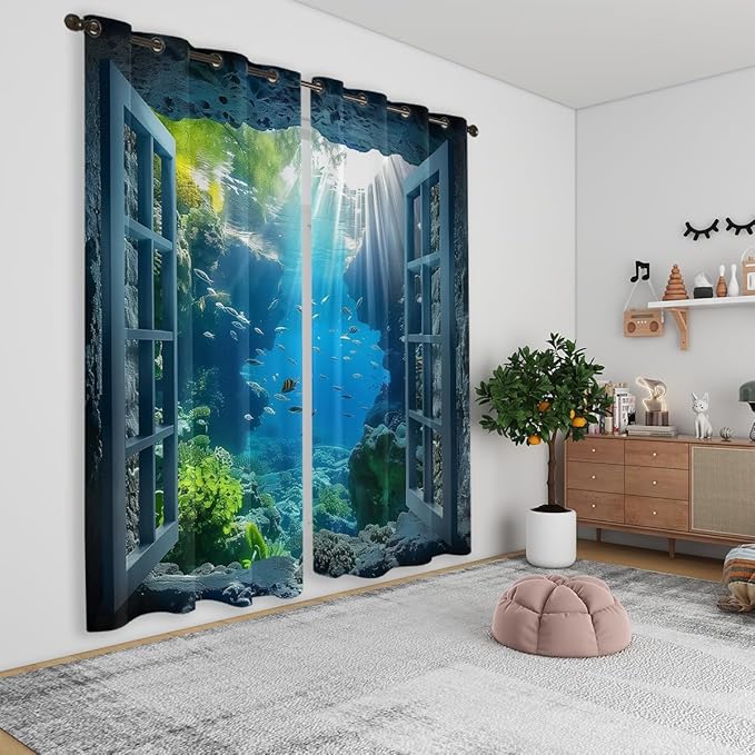 - 【UNIQUE DESIGN】 This Ocean Fishs decorative curtains style is Fashion, bringing a bold and fun feeling to the bedroom and living room. Using 3D digital printing and dyeing technology which brings visual enjoyment. Suitable for different styles of home decoration. These drapes will make any room in your house pop.