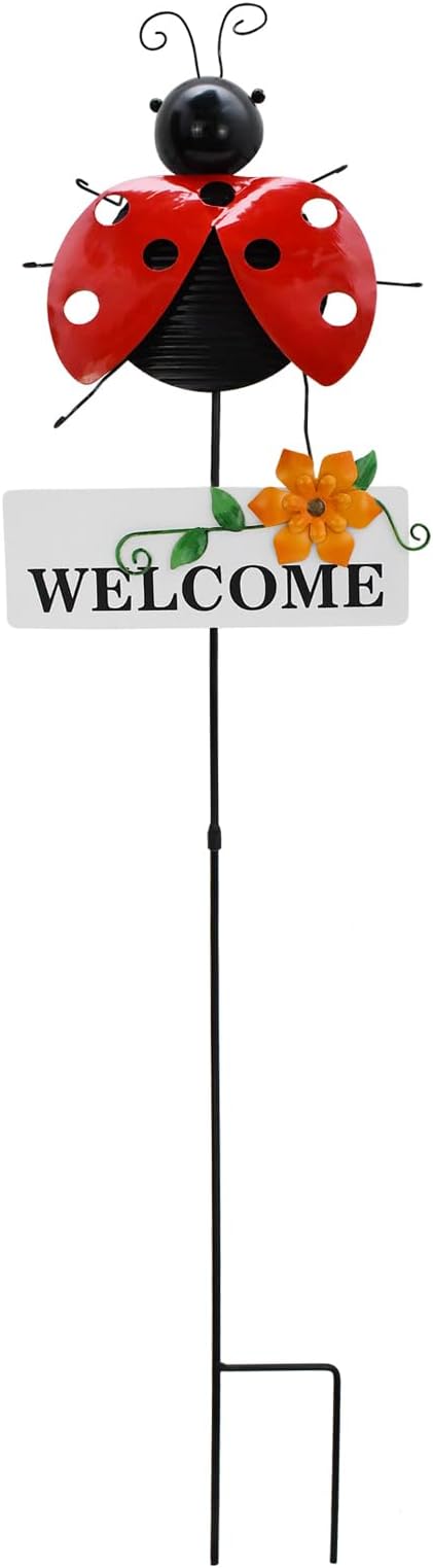 - EASY INSTALL: Decorative garden stake comes in 3 parts, which are pretty easy to assemble. Just screw the bug and stem together by hand,then insert the welcome sign, no tools needed. Ladybug metal yard art stake will bring more refreshing feel of nature for your pathway,walkway, planter etc.