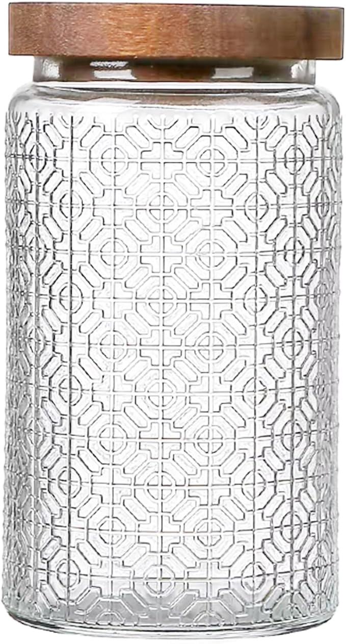 Vintage Glass Jars with Wooden Lids, 34 oz Airtight Glass Food Storage Containers Sets for the Kitchen, Sugar Candy Coffee Cookie Tea Spice Pasta