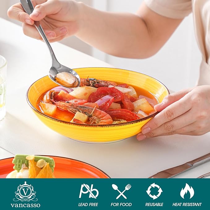 - 【Experience a Colorful Feast】Indulge in a colorful feast with our vibrant hand-painted stoneware dishes set by vancasso! If you're in search of a distinctive stoneware dinner set to inject vibrancy into your table, your quest ends here with our exceptional product!