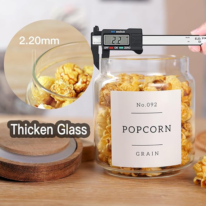 - 【BEYOND GORGEOUS AND DURABLE】The glass pantry storage containers made with high-quality durable thick glass. Farmhouse glass canister will surely enhance your party or home to a beyond beautiful look. Includes wide mouth wood lid with silicone ring for safe and tight seal to keep the food fresh at all time.