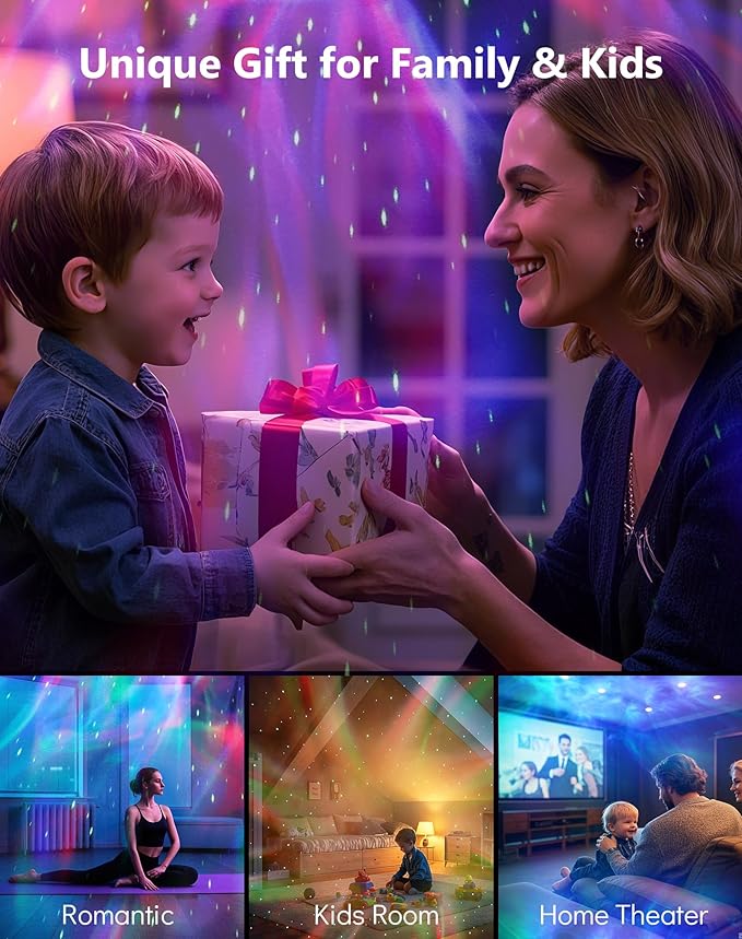 - Upgraded Galaxy Projector: Elevate any room with Rossetta Galaxy Projector, featuring stunning northern lights and a starry sky. Use it as a night light or white noise machine to create a calming light ambiance with soothing sounds for relaxation or sleep