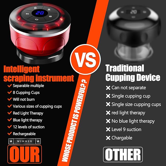 • 💖【4-in-1 smart electric cupping therapy set】Our smart dynamic cupping therapy set integrates respiratory cupping, scraping, massaging ,red light hot compress and other functions into one to provide a comprehensive physical therapy experience tailored to your massage needs, bring all-round relaxation to your tense muscle and entire body.