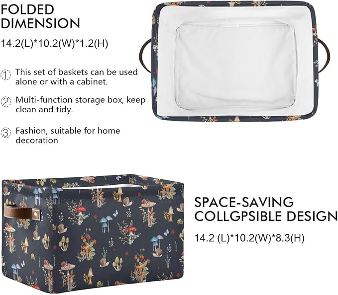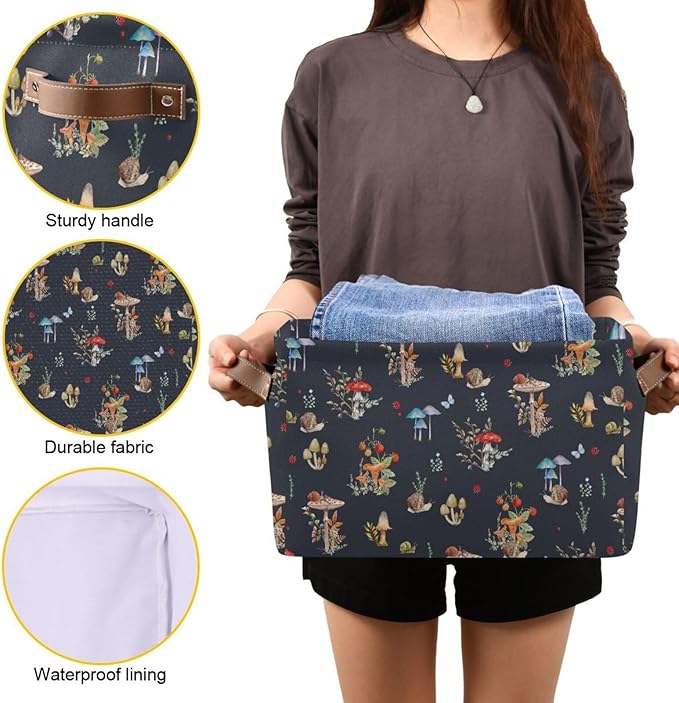 Storage Basket Bin Mushroom Snail Organizer Basket Collapsible Shelf Basket Cube with handle for Nursery Bedroom Bathroom, one sizex1