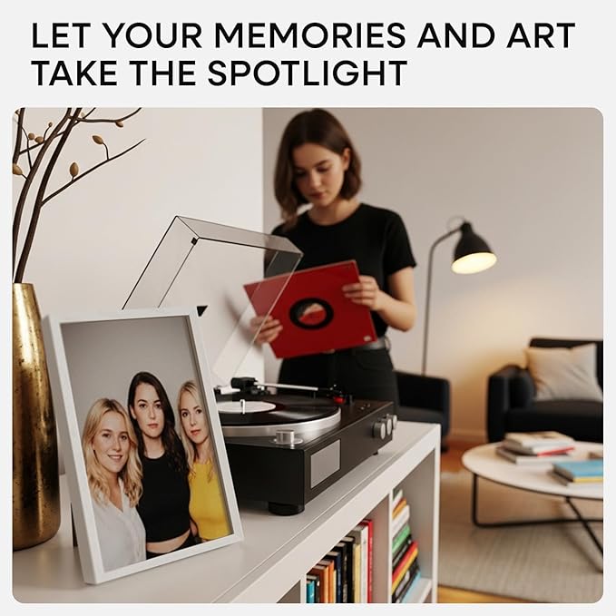 - GALLERY GRADE GLASS, TRUE CLARITY. Why settle for cloudy plexi? Our ultra-clear tempered glass sharpens every detail and adds instant polish to your photo or print.
