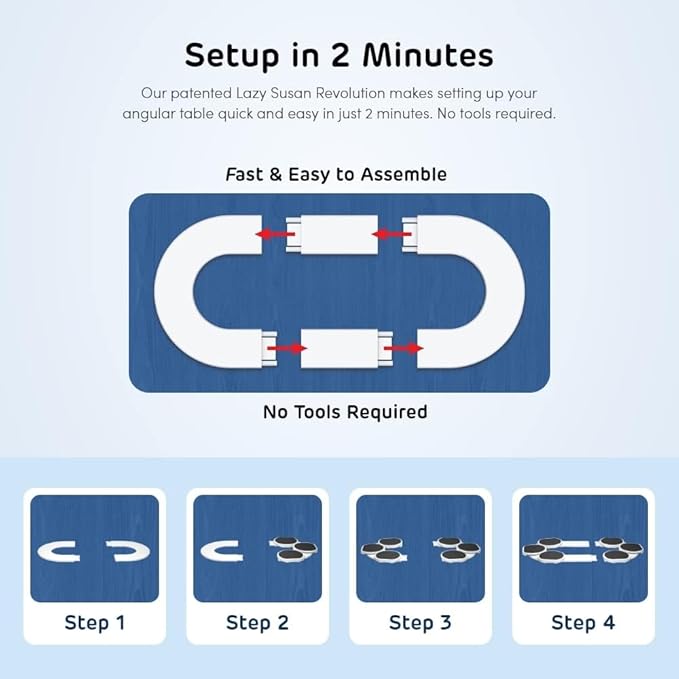 - โฐ 2 MINUTE ASSEMBLY - Our easy-to-assemble, easy-to-use, and easy-to-clean extra-large lazy susan is the perfect addition to your dining room table. No tools are needed to assemble. Plus we've designed our box specifically for storing your lazy susan turntable quickly and easily after meals.