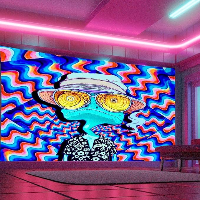 ADDWel Blacklight Frog Tapestry, Hippie Alien Tapestry Glow In The Dark, UV Reactive Black Light Upright Posters Wall Hanging for Bedroom Dorm Living Room Backdrop Decor