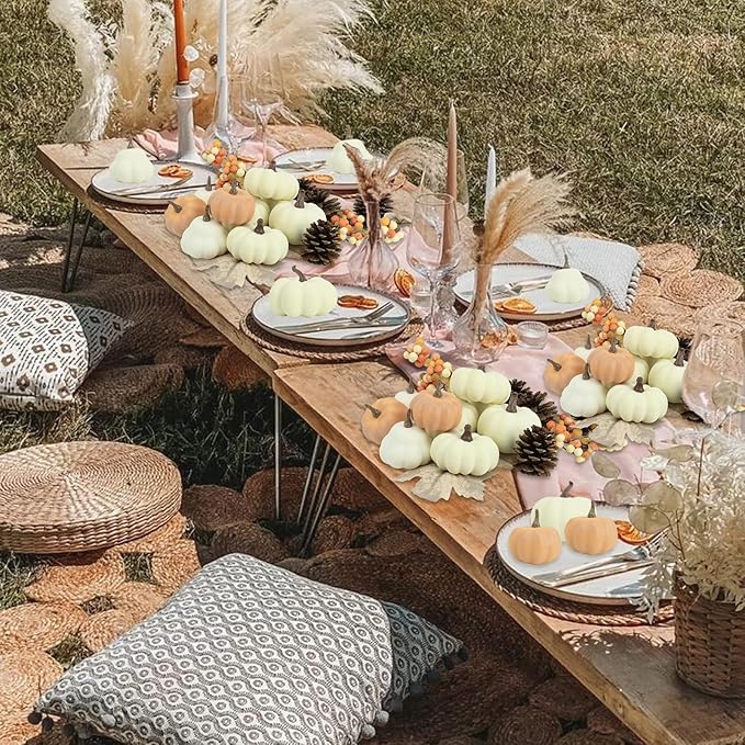 - 【Autumn Decor】Artificial pumpkin sets assortment of iconic autumnal embellishments, great for centerpieces, Halloween Thanksgiving party decorations, embellish wreaths, or as a basket and vase filler. You can use your creativity to decorate your home and fill your home with the autumn atmosphere.