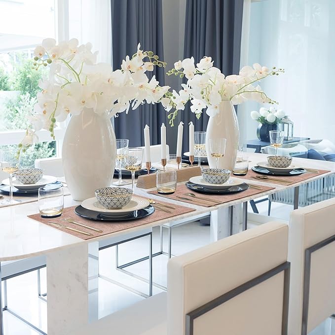 - ✅[HIGH QUALITY & NON -SLIP]: The surface of the placemats uses the latest technology to imitate the texture pattern of linen,so that our product is classic and beautiful at the same time. The surface of the double -sided 3D can increase the friction of the placemats, so that your tableware will not slide easily during dining to achieve anti -slip effects.