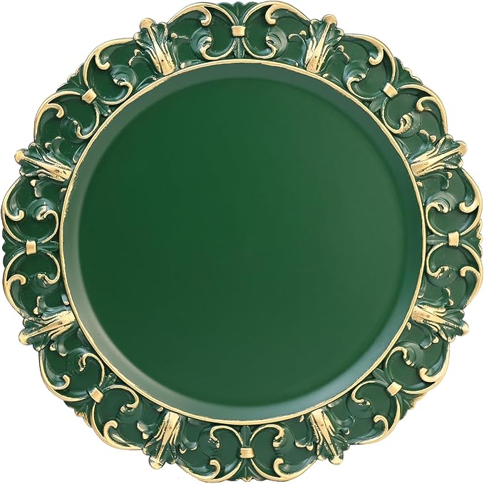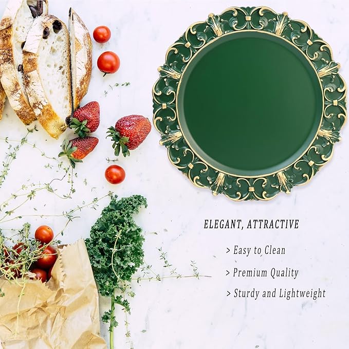 Green Charger Plates Set of 6, Decorative Table Plastic Chargers for Dinner Plates, Party, Wedding, Thanksgiving, Christmas, FD1GR