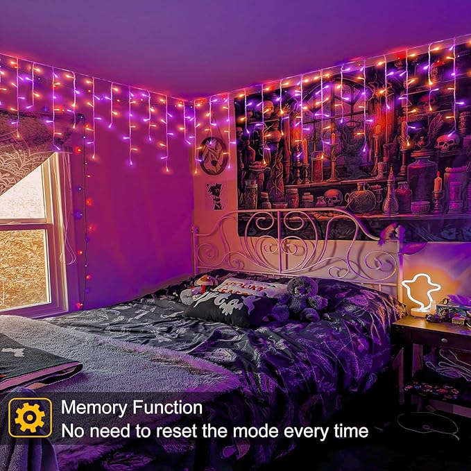 - Waterproof: The outdoor Halloween decorations is perfect for outdoor using, including heavy rain and snow. Sealed LED beads, thick gauge wire and coating all are IP44 waterproof, they make the outdoor icicle lights durable and worked great through the season. But please kindly note that the plug is not waterproof, please do some protection or keep them away from water.