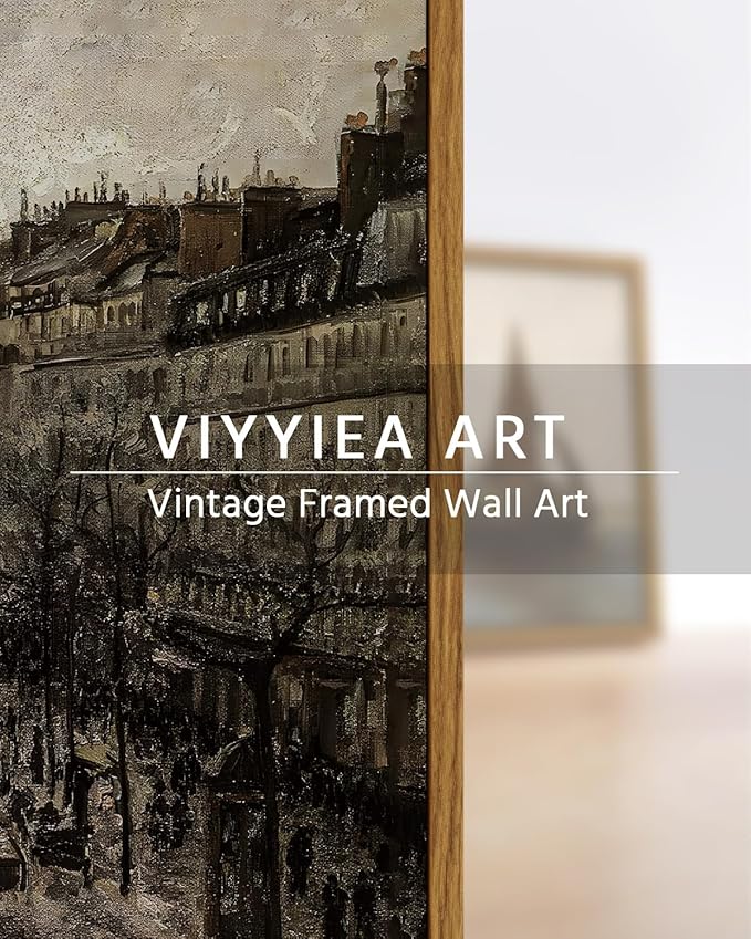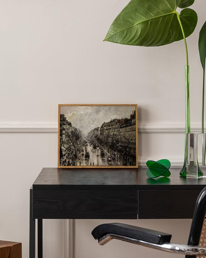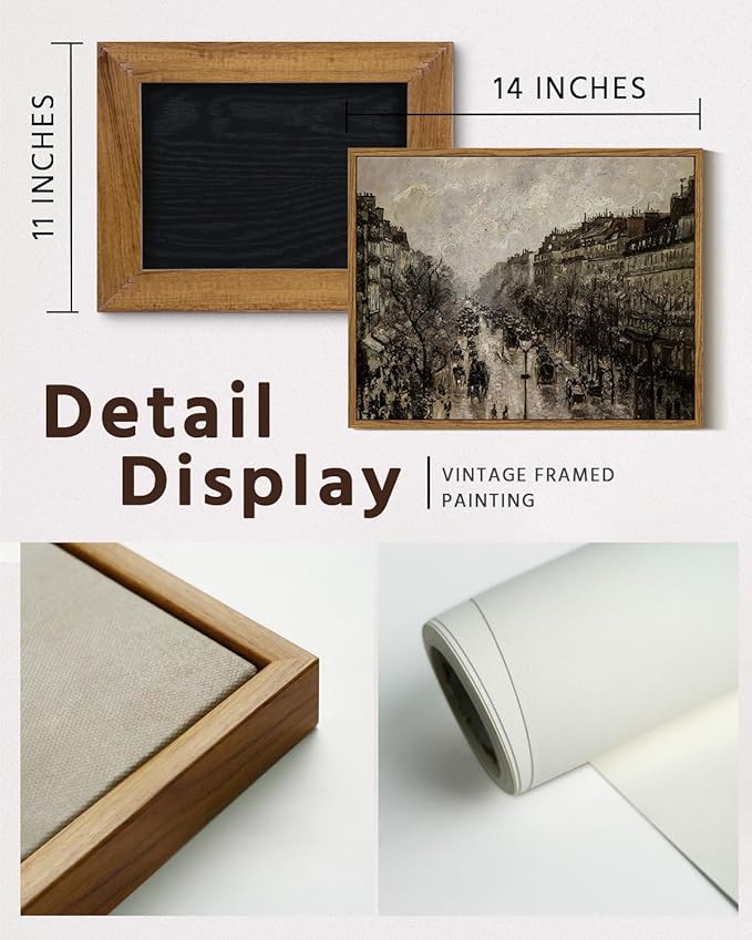 - VINTAGE FRAMED WALL ART DECOR: This painting, "Boulevard Montmartre à Paris" is the work of 19th century French artist Camille Pissarro. This work captures wall art decor not just a Parisian street, but a moment in time, alive with movement and the charm of city life in the rain. This vintage landscape painting can add more classic and elegant elements to your space.