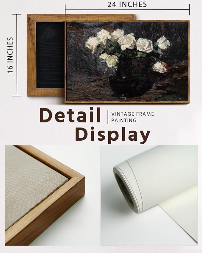- CLASSICAL WALL ART HOME DECOR: This vintage flower oil painting transports us to a bygone era, where the timeless beauty of nature takes center stage in a masterful display of artistry. These classic artworks capture the essence of a romantic and nostalgic time, allowing us to savor the enduring beauty of white roses life as seen through the eyes of talented artists from the past.