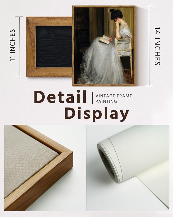 - VINTAGE OIL PAINTING: The portrait wall art is a beautifully executed painting that combines realism with subtle impressionistic touches to create a serene and intimate scene. The retro frame enhances the artwork's elegance, making it a striking and valued piece. The wall decor painting's focus on a solitary woman reading in a quiet, warmly lit space evokes themes of contemplation, solitude, and intellectual engagement, making it a timeless and evocative work of art.