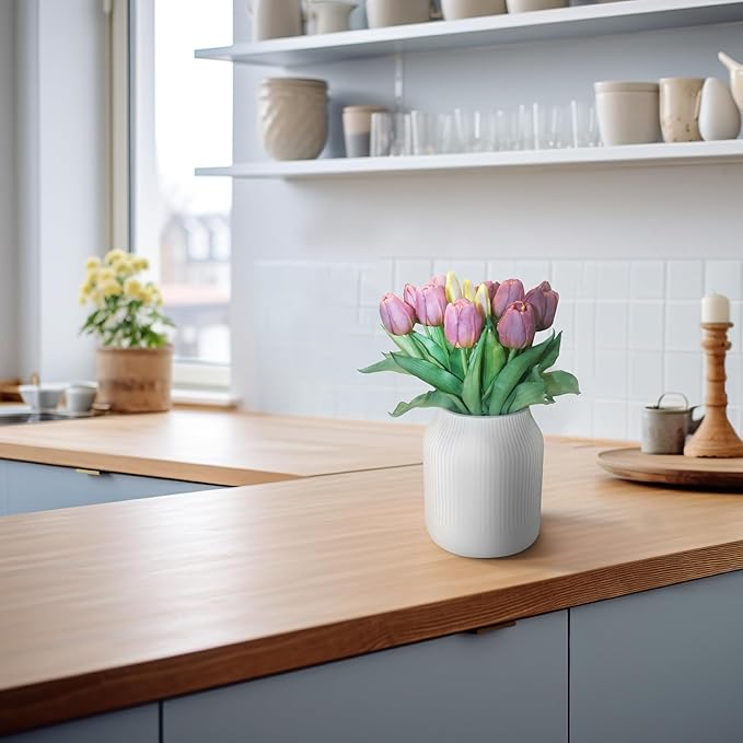- [Real Touch]: Our latex tulips closely mimic the texture of real flowers, and the buds resemble the natural growth state of the plant. With bright, shiny colors, real touch flowers provide a unique sensory experience, uplifting your mood when placed in your home.
