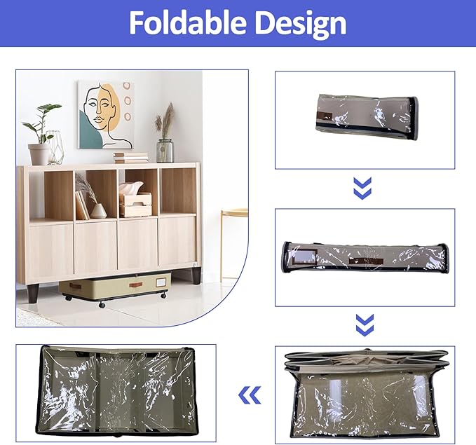 - 【 Utilize the space】Whether you have enough closet space or want to store more seasonal items. Use every square foot of your home to store things, and solve countless storage problems with out-of-the-way Spaces. If you do not use a folding storage box for the time being, a good product that does not take up space. For cleaning, just wipe with a wet towel and air dry.