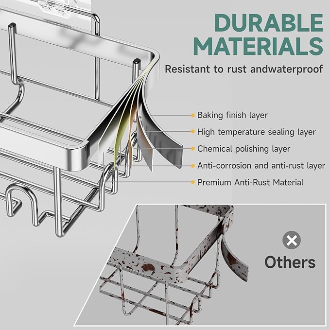 - Waterproof & Rust-Resistant: Designed for use in high-moisture areas, this caddy is made from rustproof and waterproof materials. It resists corrosion over time, keeping your shower organization solution looking pristine in damp environments.