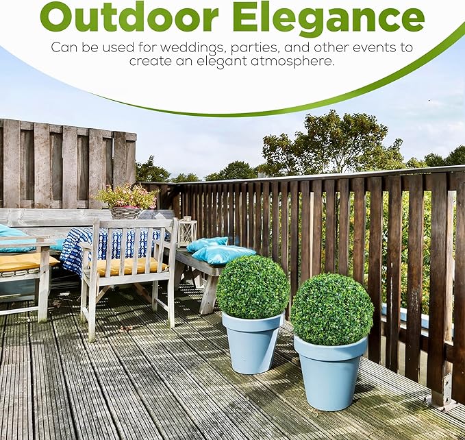 - VERSATILE DECORATIONS – Enhance any space with our high-density, faux boxwood balls. Perfect for the home, porch, or garden, they add low-maintenance greenery anywhere. Each measures about 20” in diameter.