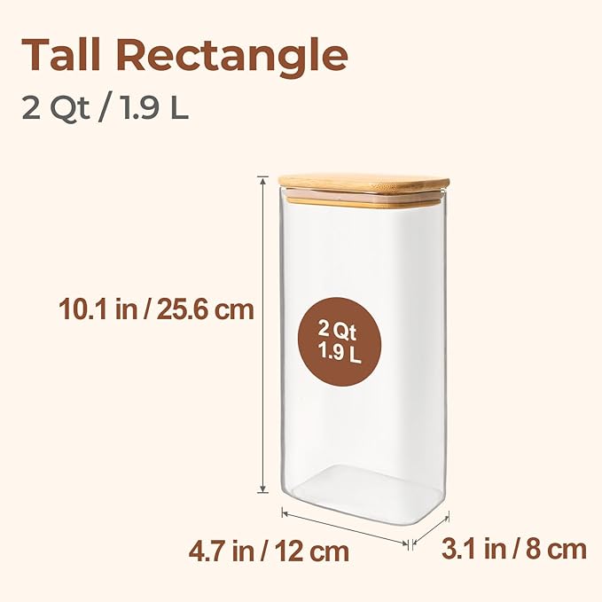 - Clear Kitchen Jars: Enhance your kitchen organization with our square square glass containers, featuring a transparent design; the see-through glass allows effortless monitoring of food levels, enabling you to track usage and assess food storage condition