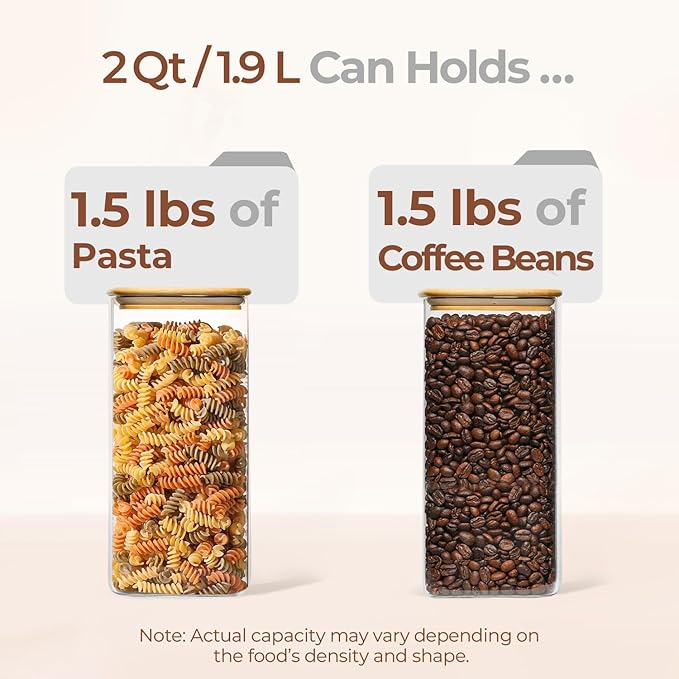 - Versatile Glass Canisters: Experience the versatility of our glass pantry storage containers; ideal for storing cereals, cookie, snacks, nuts, oat, or even can use these glass jars as candy jar, bath salt jar, spice jar, sugar coffee containers