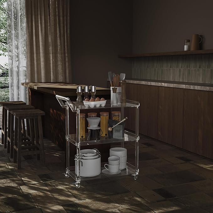 - A Functional Cart:This acrylic cart can work as a storage cart in kitchen,living room,dining room and so on.Modern style fits many occasions. Save your space and make your home more tidy, clean, and comfortable.